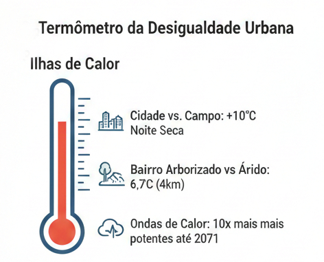Esse "abafamento" urbano é uma característica marcante da expansão periférica desordenada, onde a vegetação é removida para dar lugar a lotes mínimos cobertos por construções de baixa qualidade térmica.