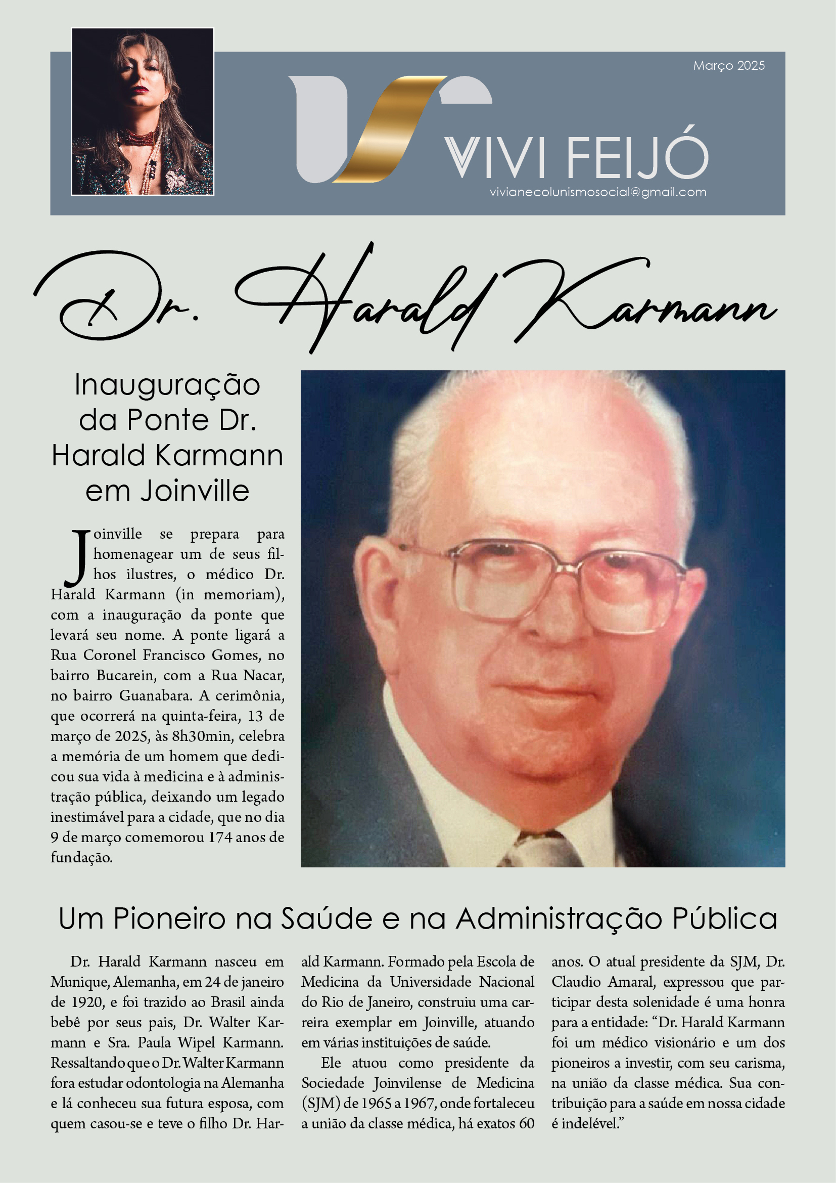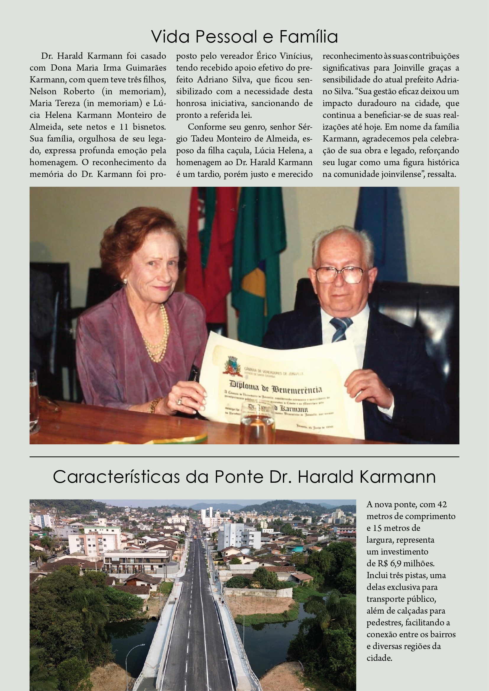 Joinville se prepara para homenagear um de seus filhos ilustres, o médico Dr. Harald Karmann (in memoriam), com a inauguração da ponte que levará seu nome .