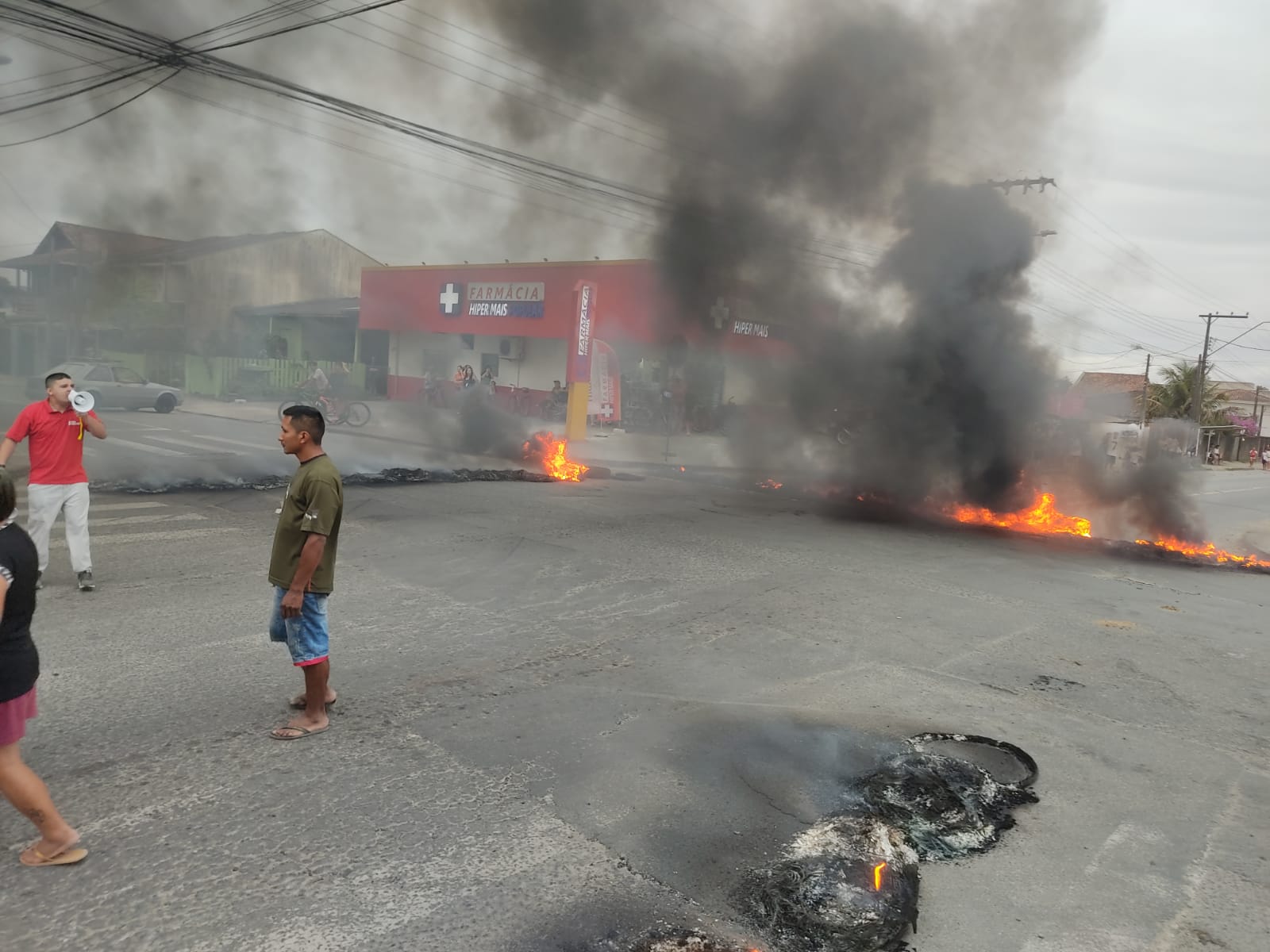 Por volta das 17h30, cerca de 30 manifestantes bloquearam totalmente a via principal do bairro. A situação se agravou quando o grupo ateou fogo em pneus. Segundo relatórios da Polícia Militar, os manifestantes impediram a aproximação do Corpo de Bombeiros, que tentava conter as chamas.