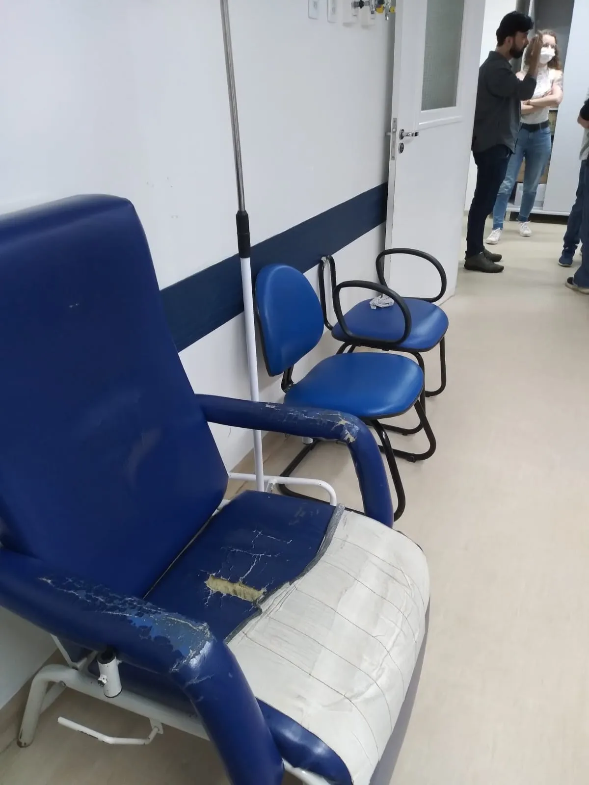 A poeira, vazamento de água por cano estourado e barulho, inerentes ao processo de reforma, fazia conjunto à demora por até três horas por um atendimento médico.